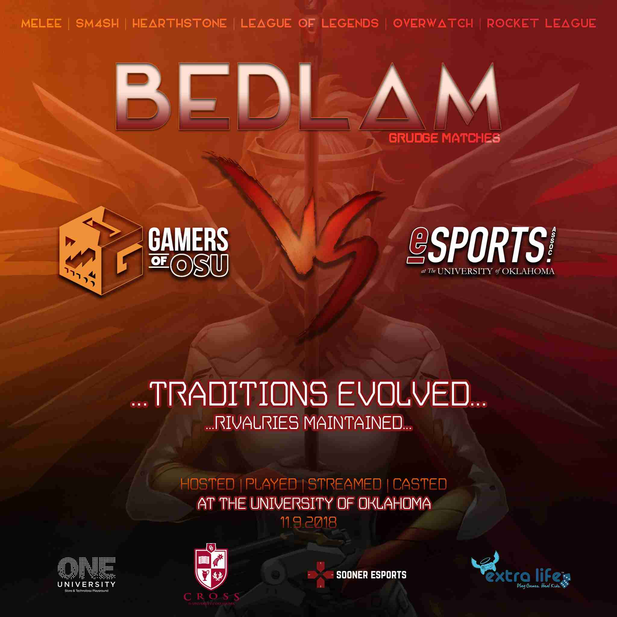 There are several reasons for this event to take place outside of bringing new relevant forms of entertainment and competition to the forefront of not only the University of Oklahoma but also the entire region. We are 100% interested in elevating not only ourselves and OU but also our peers at other universities across the state and region. All refs, shoutcasters, and programmers are either OU or OSU students, OU or OSU alumni, or OU employees. Through generous donations of hardware and space utilization we have a $0 operating cost for this event aside from our time. This shows the power of gaming and esports on university campuses and we will showcase what this all looks like. We hope you tune in or come to support your teams and these energies as we ramp up programming across the board.