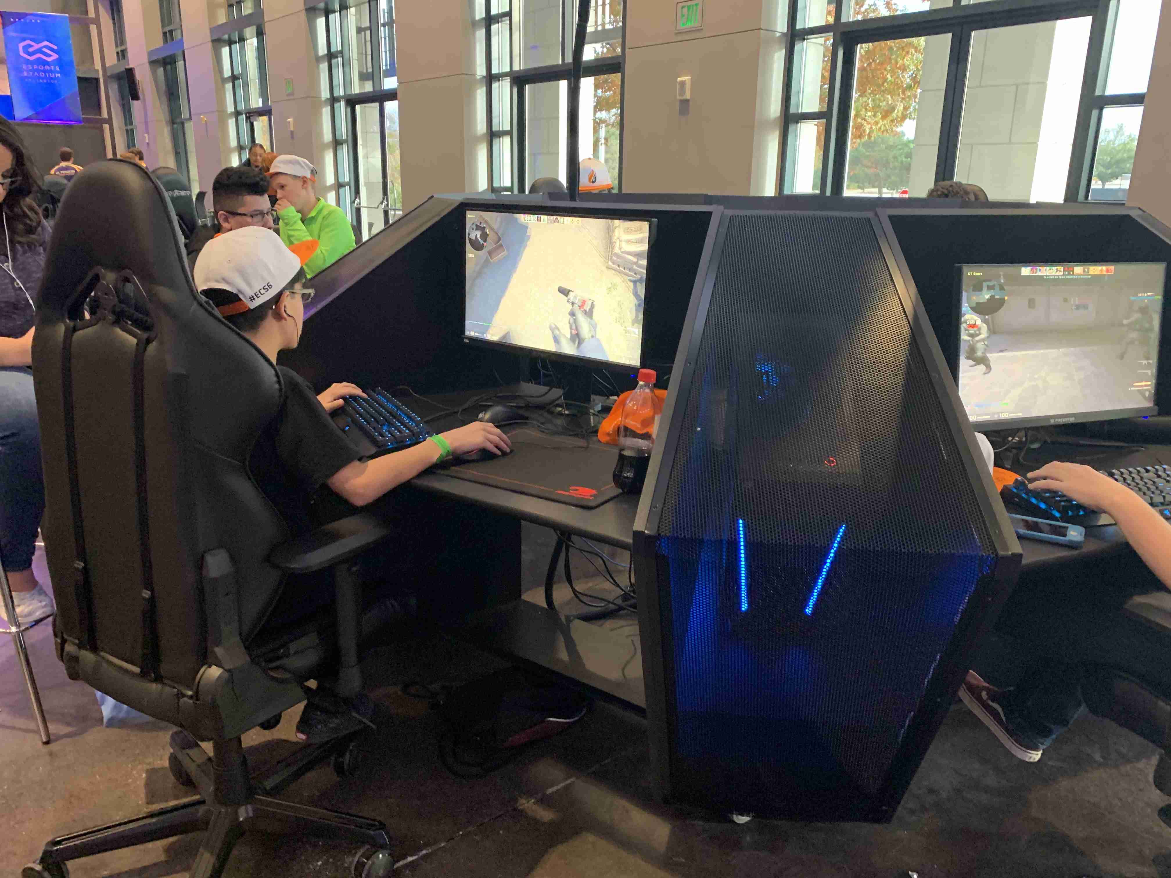 The 100,000 square foot facility houses an esports arena with seating for 2,500 and a shoutcasting booth. Outside the arena, several free play booth house high powered computers and consoles that are ready to be rented to the public.