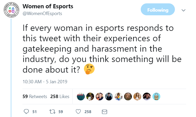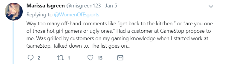 Reactions like this happen more often than not. Recently, the Twitter @WomenofEsports started a thread of tweets where women replied about their experiences of harassment in the gaming industry. The thread goes on for a while where multiple women, of all colors and sexualities, talk about their experiences in the gaming industry, either behind the keyboard or in the workplace.