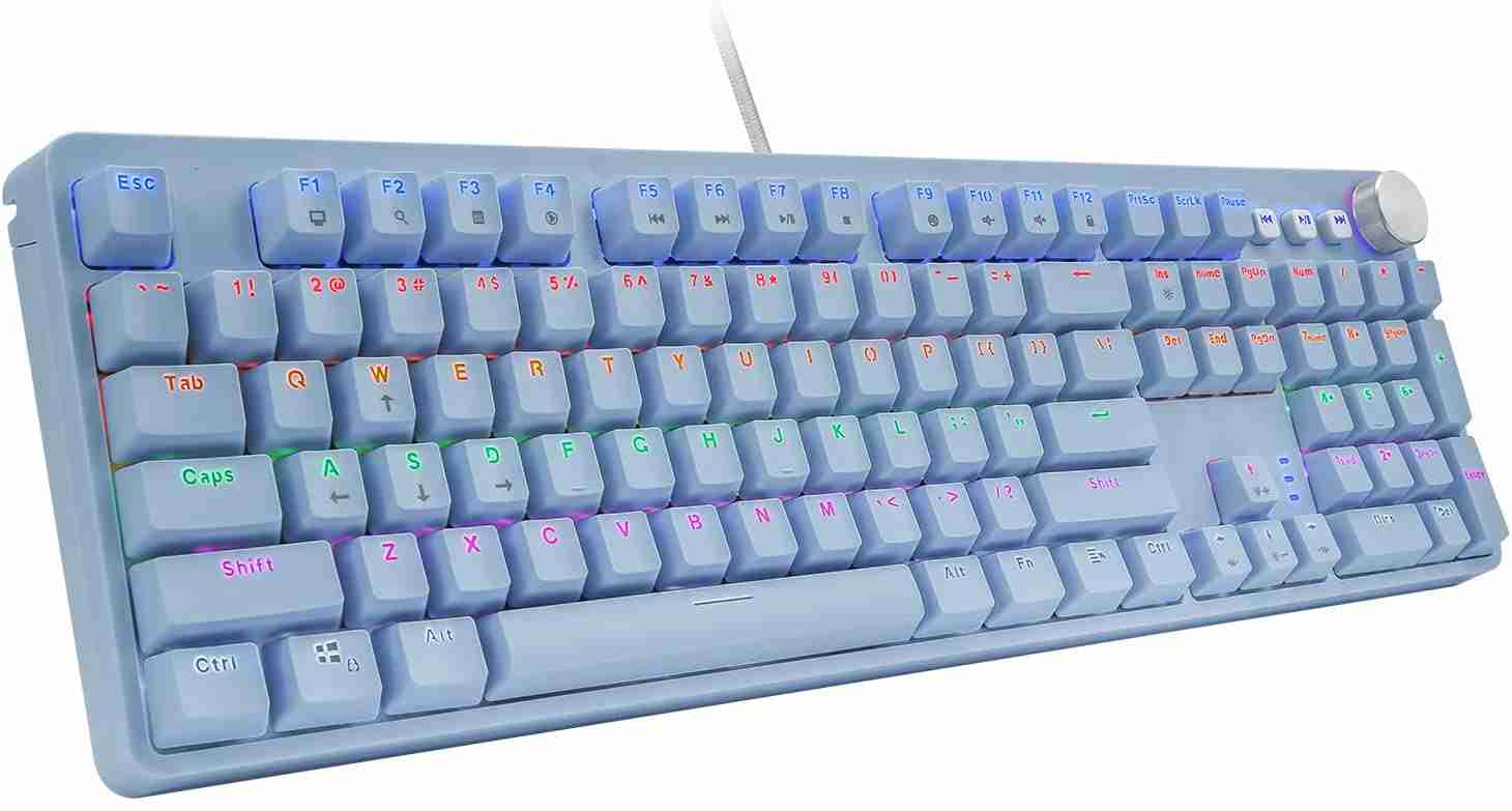 If pink isn’t for you, there are also plenty of other color options out there! This solid blue keyboard will definitely give you a unique edge over other typical “pink gamer girl” setups, but keep your setup looking as cute as it can be!
