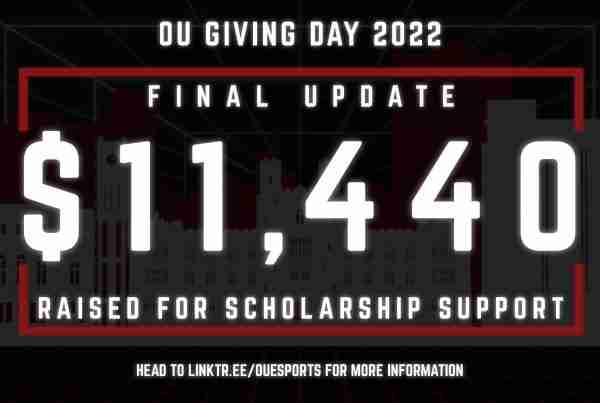 OU Esports would like to thank everyone who contributed to the stream on OU Giving Day. This money paves the way for the future of Esports not only at OU, but the future of all esports.